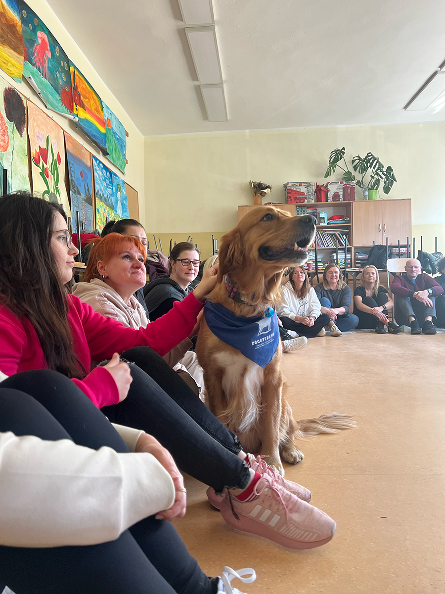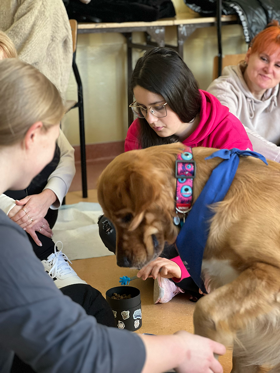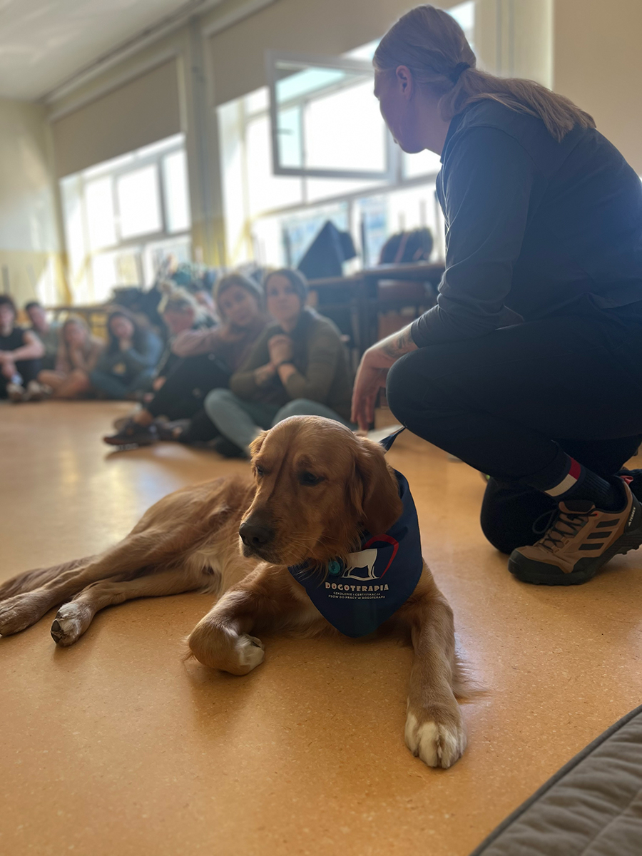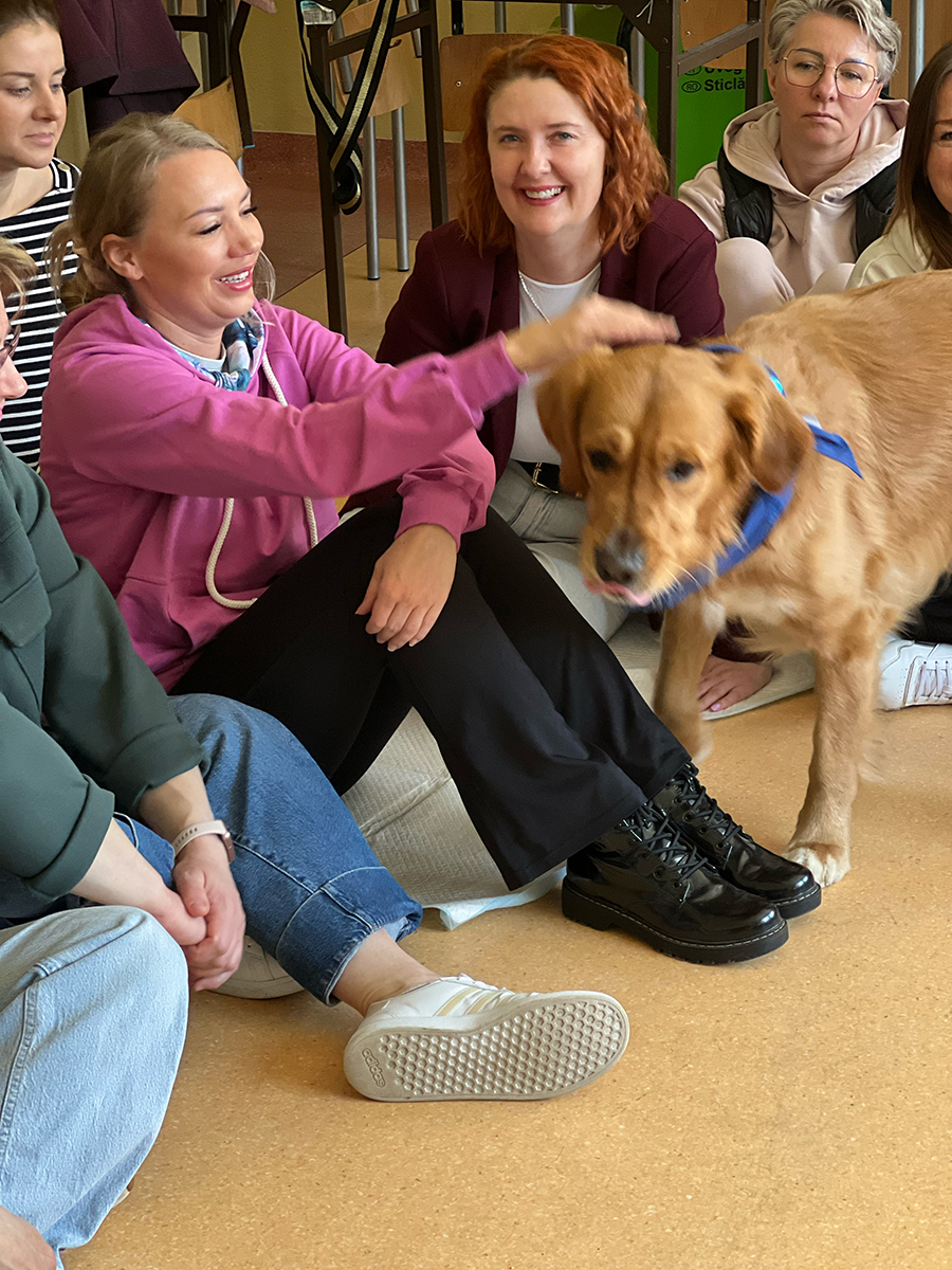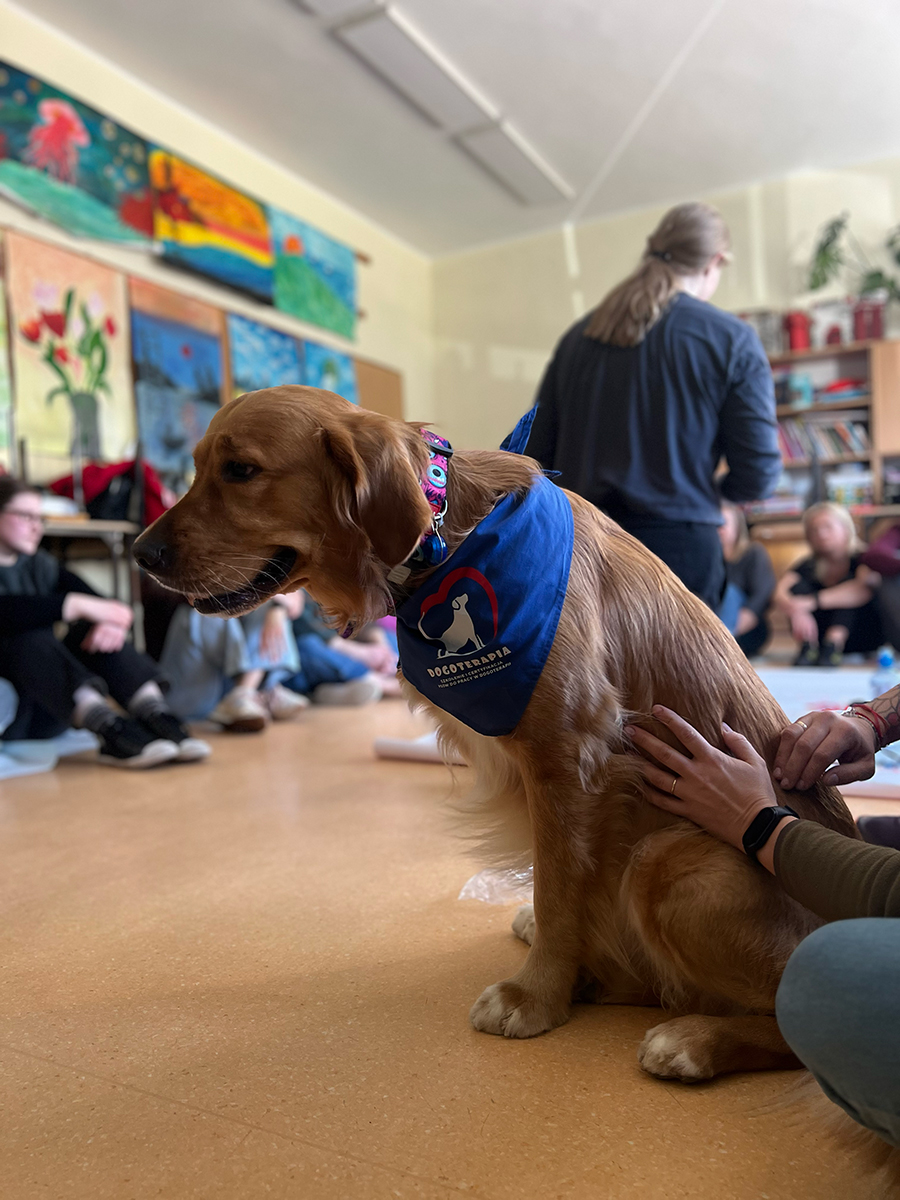 Podczas zajęć z dogoterapii uczestnicy mogli doświadczyć, jak ogromną moc mają kontakt, bliskość i wspólna aktywność z psem. Lucjan jak zawsze skradł serca wszystkich obecnych, wnosząc mnóstwo ciepła, uśmiechu i pozytywnej energii.