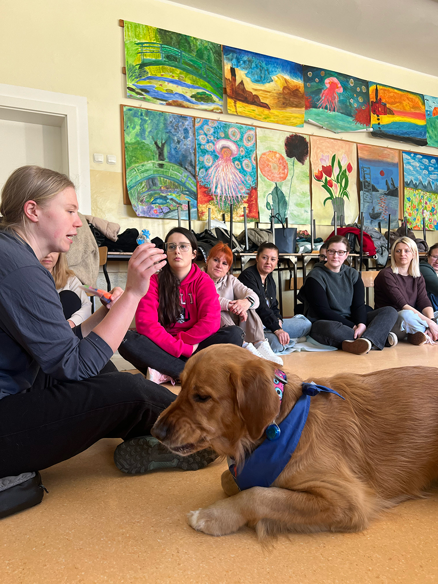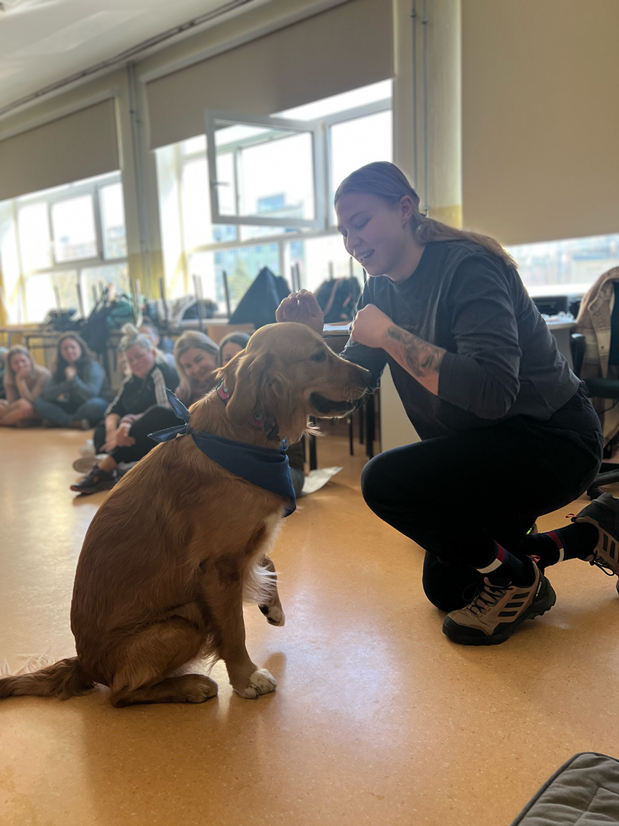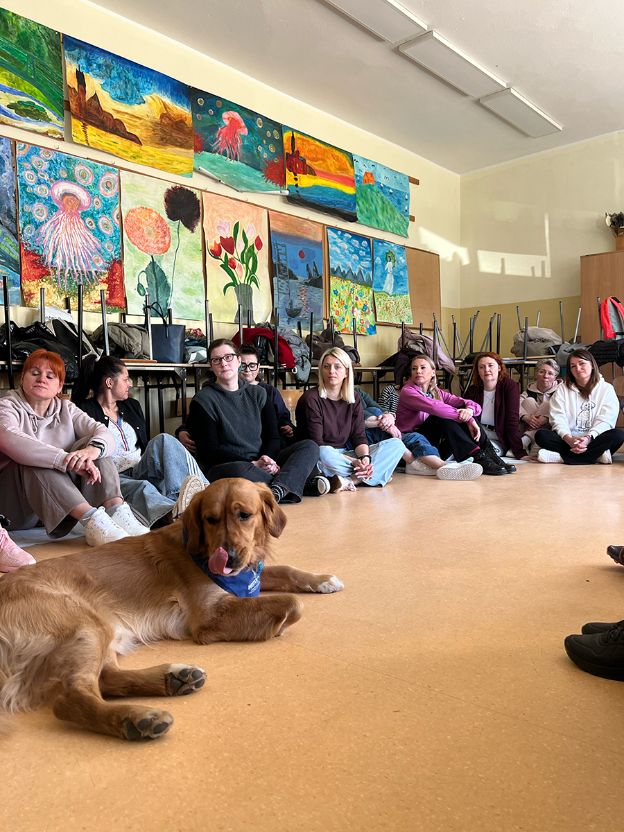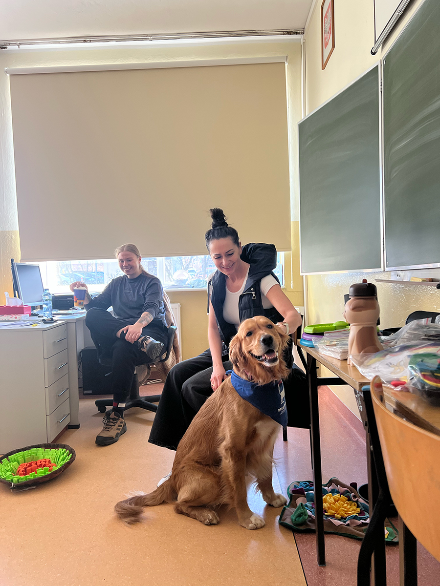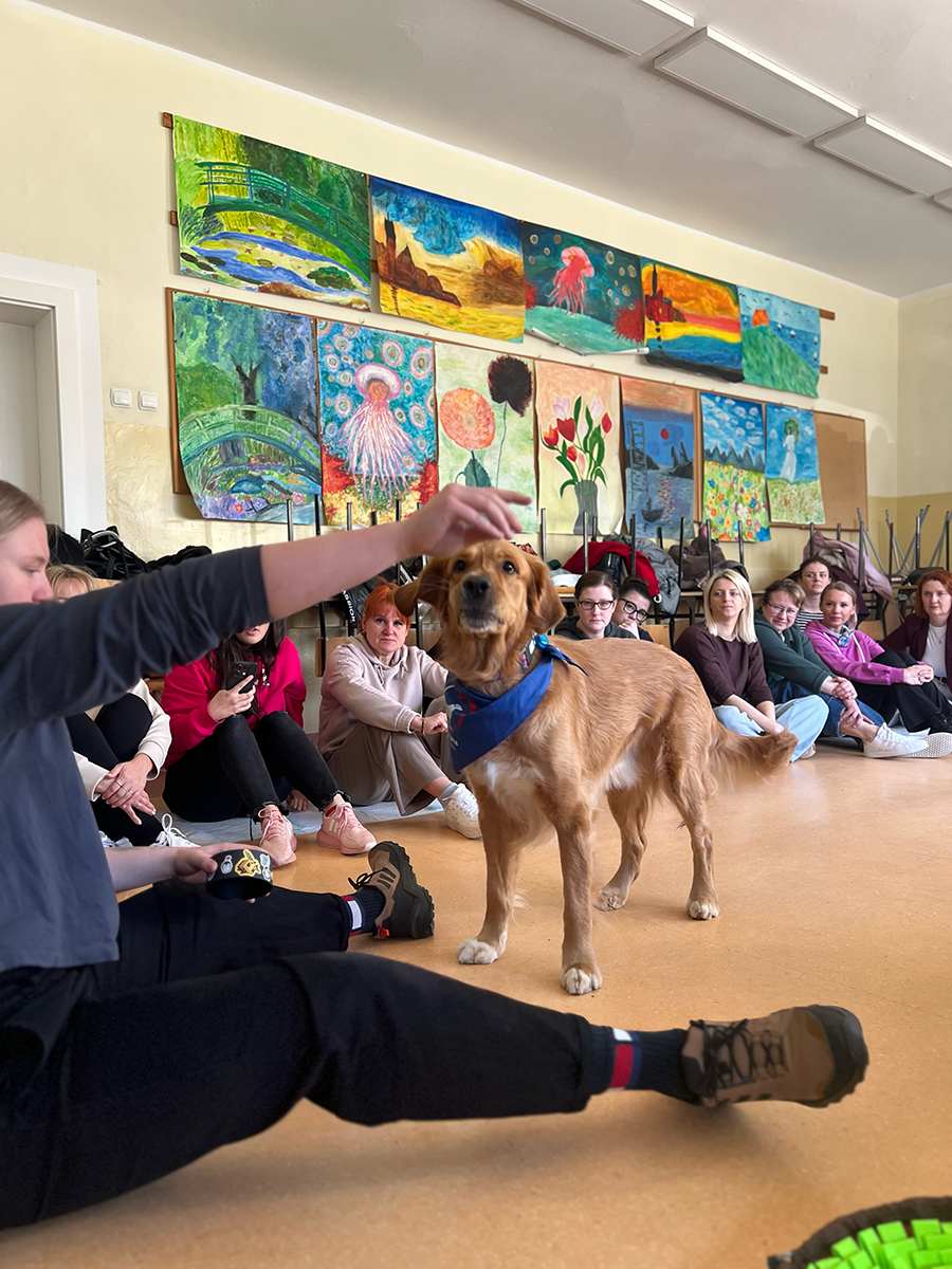 Podczas zajęć z dogoterapii uczestnicy mogli doświadczyć, jak ogromną moc mają kontakt, bliskość i wspólna aktywność z psem. Lucjan jak zawsze skradł serca wszystkich obecnych, wnosząc mnóstwo ciepła, uśmiechu i pozytywnej energii.