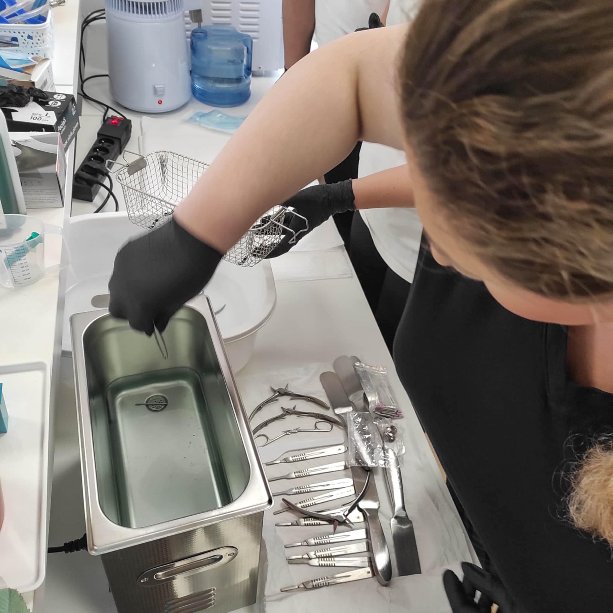 Słuchaczki pierwszego semestru na kierunków: podolog oraz technik usług kosmetycznych przeszły szkolenie z zakresu dezynfekcji i sterylizacji.